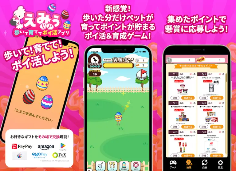 ポイ活アプリ『えみぅ』は、育成ゲームとポイ活を組み合わせた新しいタイプのアプリです。